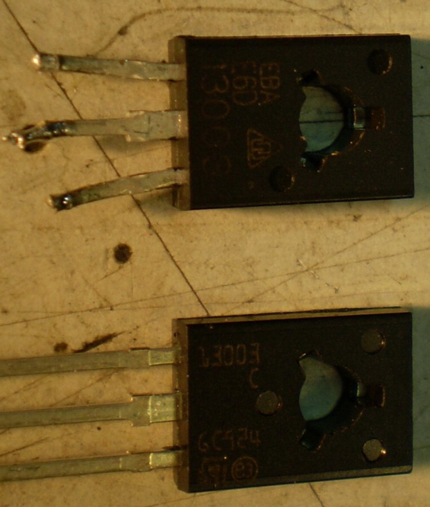 транзистори 13003 новие звонятся как простие транзистори и они неработают в етих лампочках.