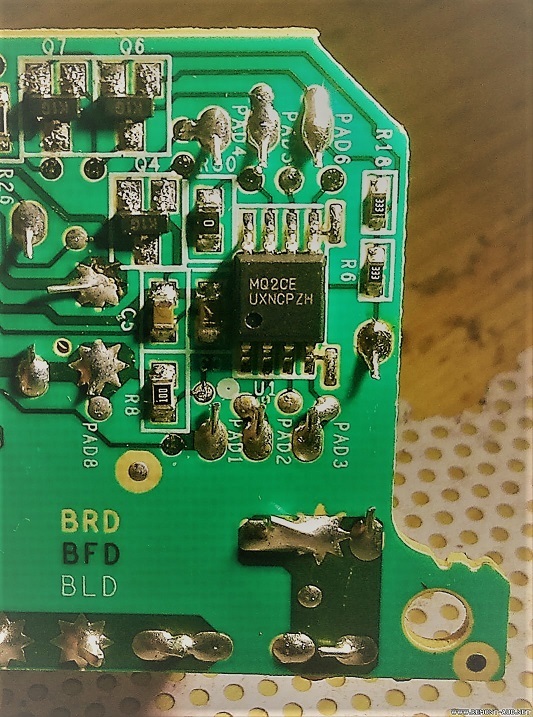 | Insinkerator evolution 200 после 9 лет безупречной работы вдруг при включении обесточил всю квартиру аж до вводного автомата. Внутри вся механическая часть выглядит как новая, а вот на плате управления обнаружена развалившаяся деталь и след сильного пробоя. После вынимания платы на обратной стороне обнаружена MQ2CE, которая тоже не выжила, треснул её корпус. Как восстановить силовую часть - в общем понятно, но как быть с прошивкой? Поиски новой такой платы не увенчались успехом. Гипотетически есть доступ к исправной такой плате, но с запретом на паяльные манипуляции - плата гарантийная. Возможно ли вытащить прошивку, не выпаивая микросхему? |