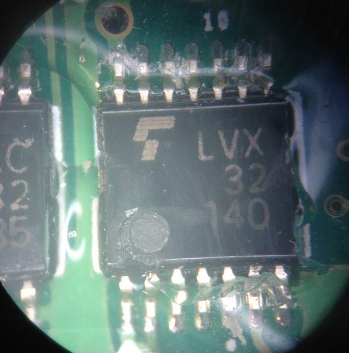 на одной на 14 ноге должно быть 3.3в, на другой 5в (контрольные точки на плате обозначены)