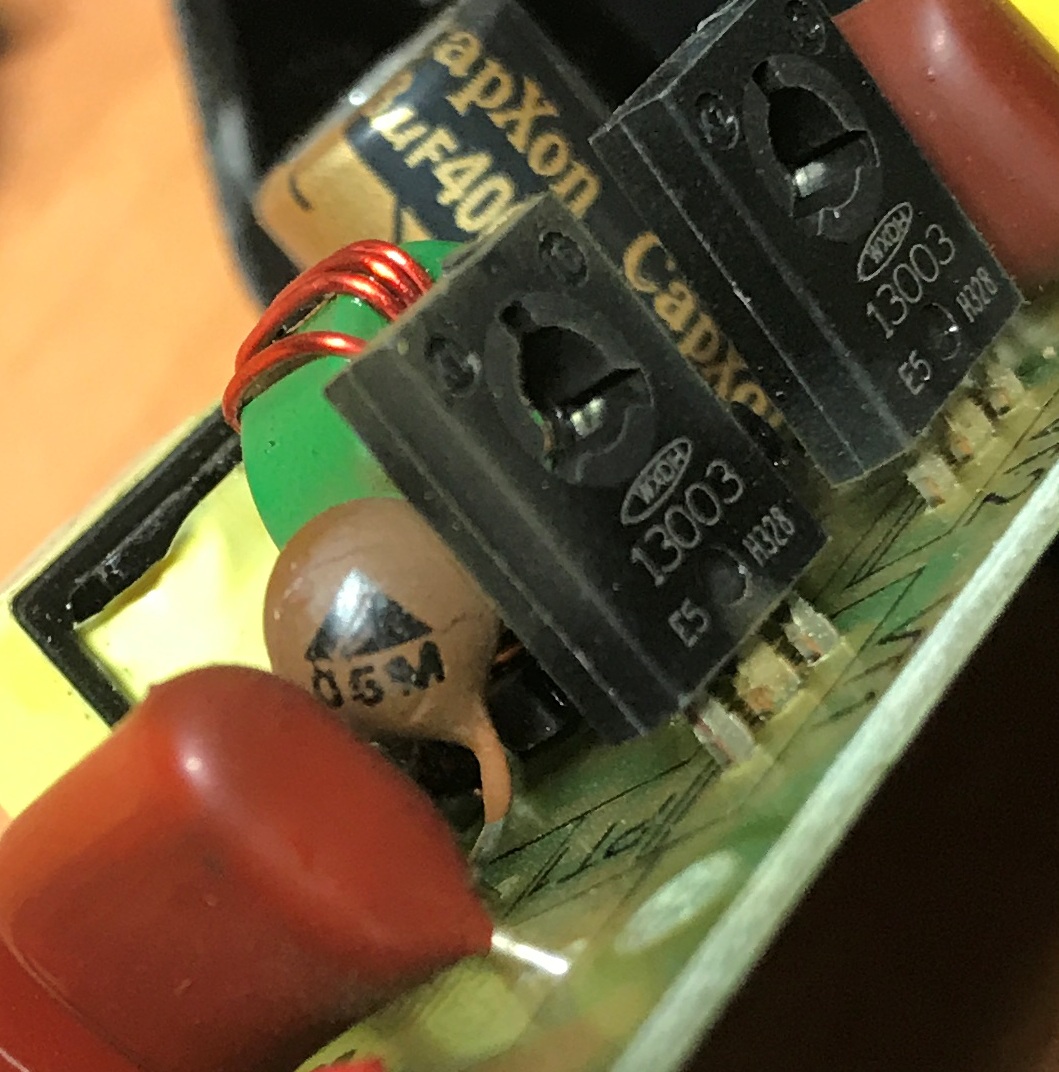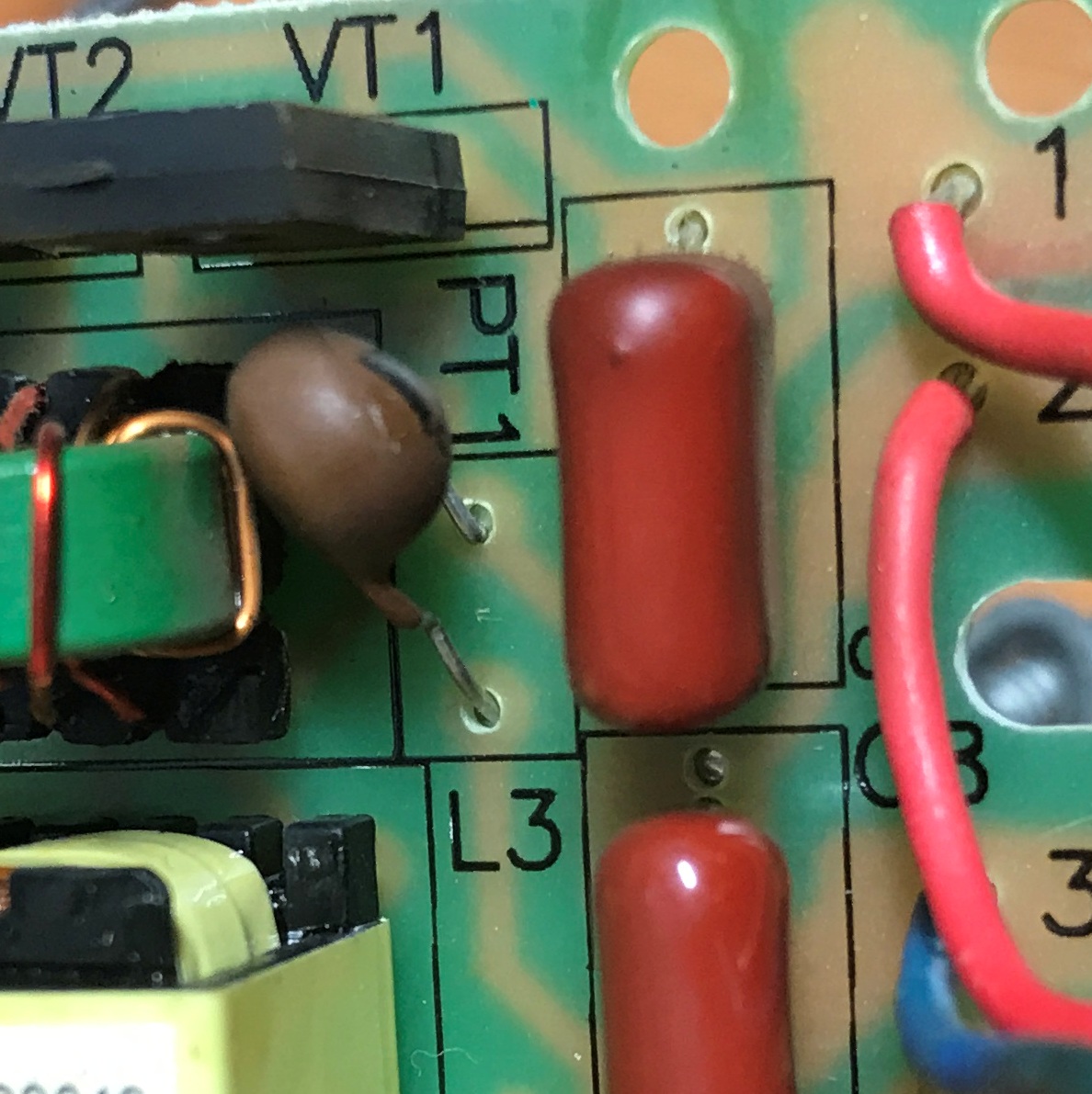 Настольная лампа Дельта, как я понимаю перестала стартовать (только сама колба тускло светиться у разъема ) на плате нашел элемент с трещиной на корпусе.