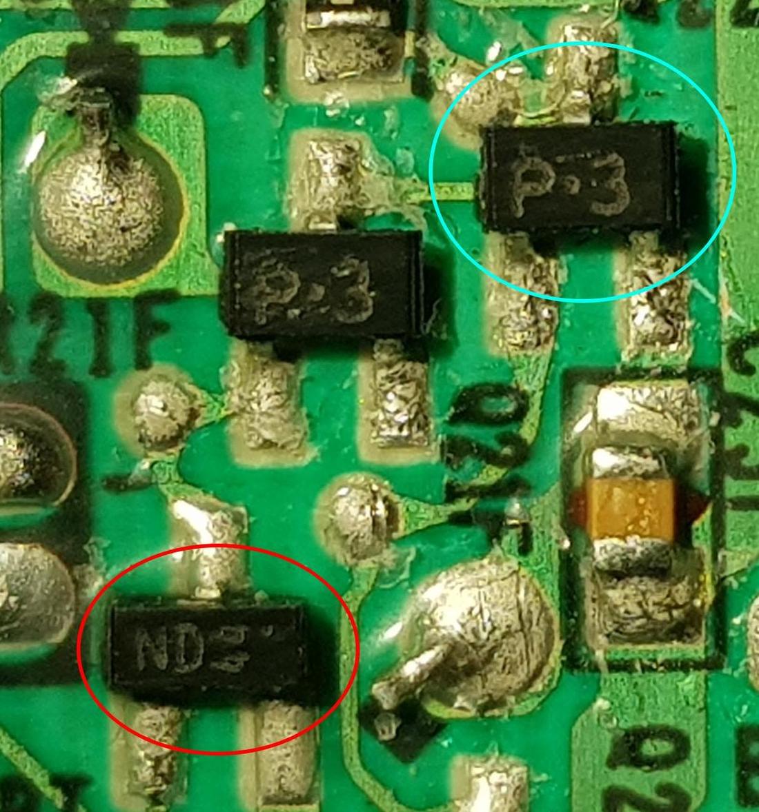 Здравствуйте! Помогите определить два компонента в SOT-23 корпусе. Похожи на транзисторы, но какие...Стоят на плате (EAX61438601) внешнего блока кондиционера LG S09AF.