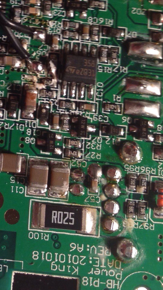 трудно залито все синем лаком. При подачи питания 12V этот элемент начинает сильно греться. |