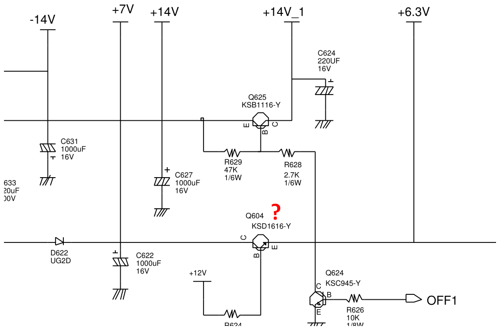 Отыскал в БП напряжение 7 V - возможно оно используется для питания нитей накала кинескопа?