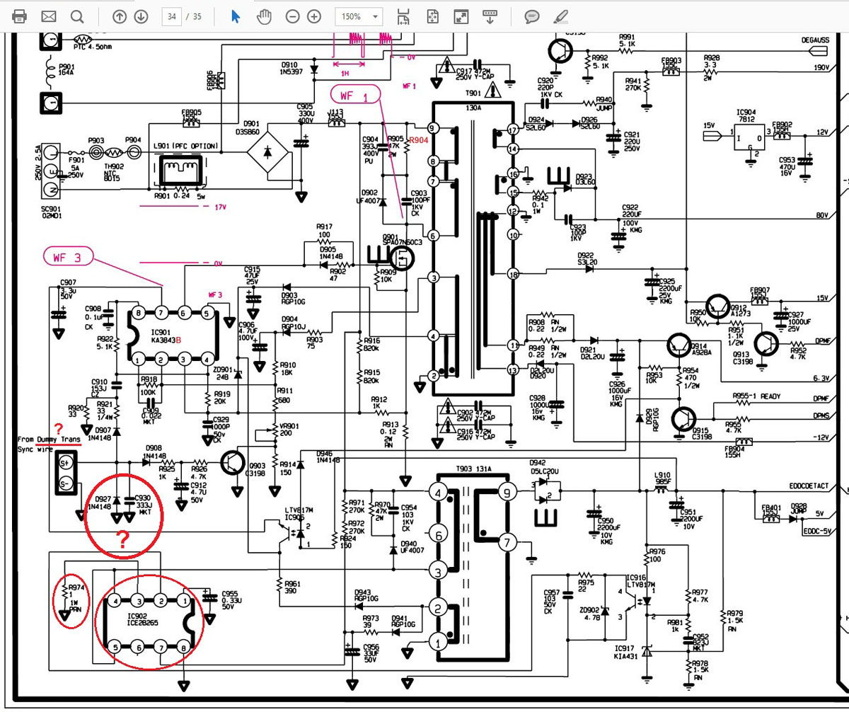 Пришел на ремонт монитор LG Flatron F900B "нет картинки"! После всех осмотров, и измерений выяснил что пробит КЭ HOT 2SC5589, а остальное в порядке. Почесал репу, странно обычно ещё там какие приколы бывают, нифига только транзистор. Ладно меняю его на 2SC5570 (такой нашел в завалах), включаю, работает... проверяю все напряжения: