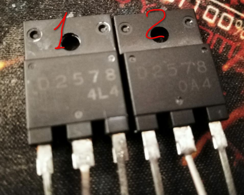 yds, у Вас приведён даташит на 2SD2578. Вы не в силах определить обычным тестером что это такое, принимая во внимание даташит? Не надо скринов свистоперделок. Тестером прозвоните переходы в прямом и обратном направлениях на диодной прозвонке. Б-Э должен звониться 25-47 Ом, т.к. внутри резистор. Э-К переход диода, Б-К п-н переход транзистора. Если он не бьётся, то уже хорошо. Обычным тестером вполне можно и на предварительном каскаде сделать замеры.