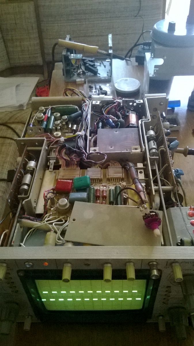 Я бы конечно с радостью отнёс этот осциллограф на ремонт опытному человеку, но с такими я не знаком, поэтому придётся разбираться самому. |