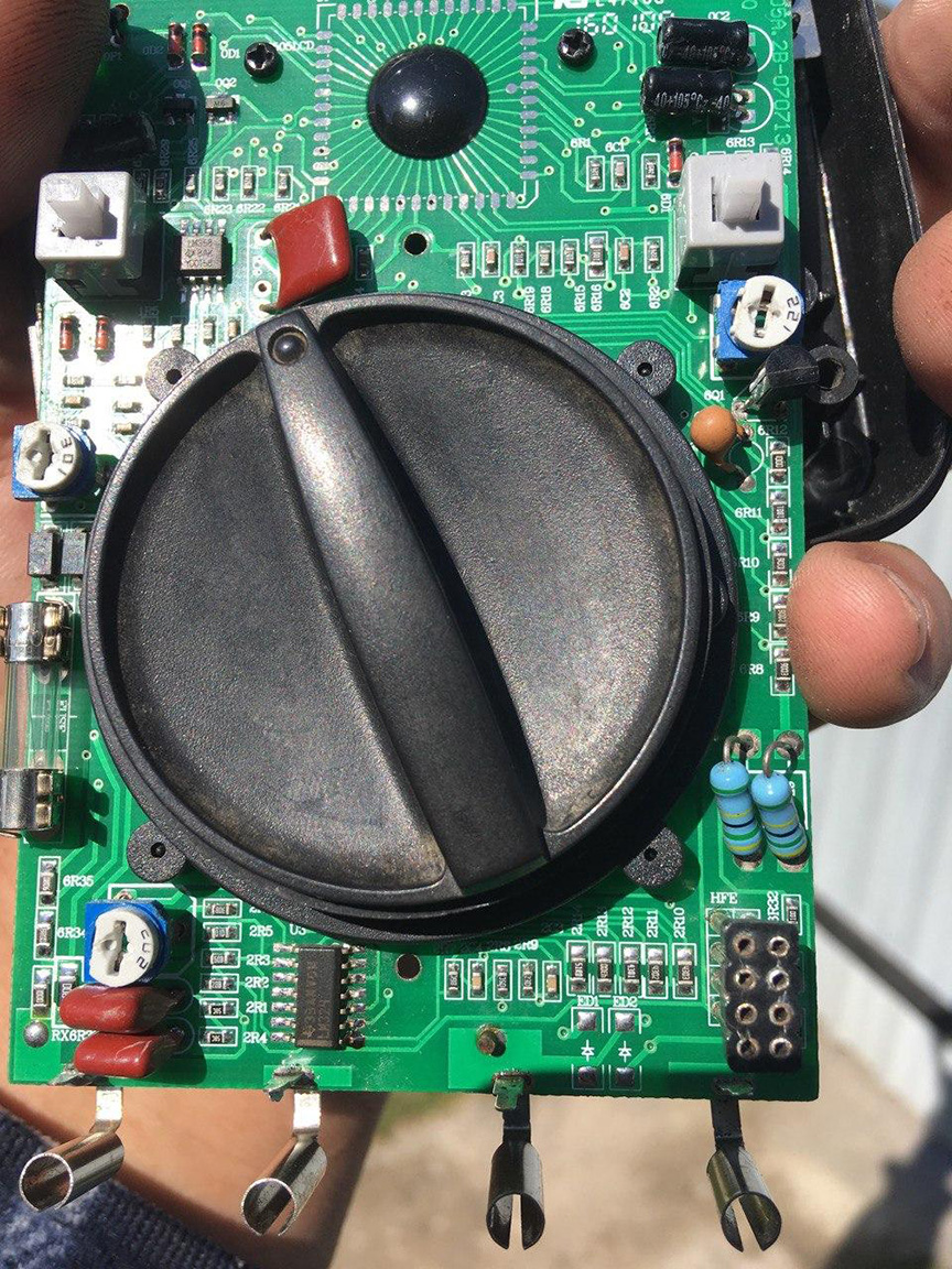 Таки, да. Этот, который разбирал, тоже уже чинил. Паяльной станцией садил, поэтому, практически, незаметно (и тоже ЛМ и какие-то резисторы). В последнее время еще один сегмент в последней цифре не работал (нижний вертикальный (на замеры не влияет, но в глаза бросается)), а вот разобрал, то еще бумажку подложил, так как ранее уже подкладывал, и сейчас все полностью работает, а так неизвестно, когда руки дошли бы.