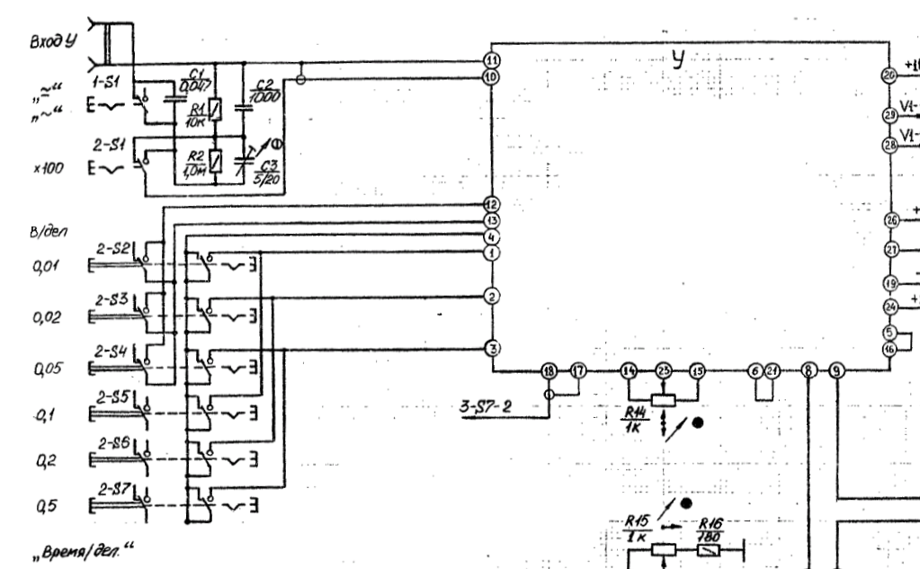 при включении тумблеров В/Деление 2S-2 ,2S-3, 2S-4 луч убигает в самый низ и ни какими регулировками в верх поднять нельзя,ещё ниже и за край опустить можно R-14.