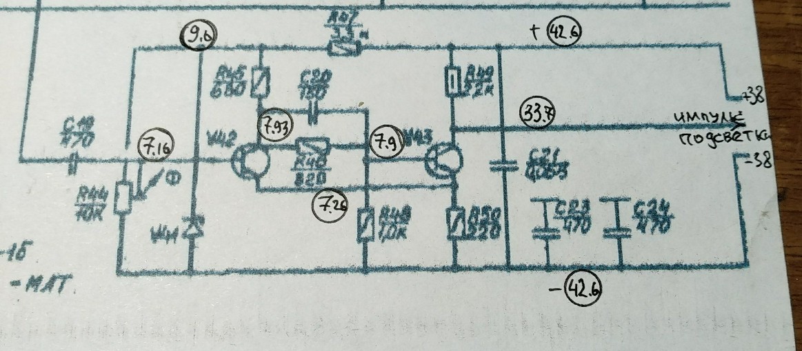 | С правой стороны на схеме подписано"импульс подсветки", что идет от триггера на двух транзисторах. |