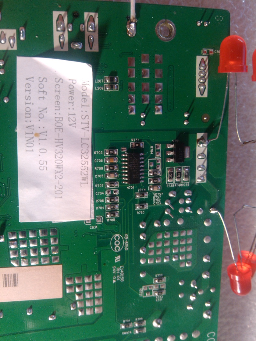 Причём, что прикольно, если вытащить разъём LVDS, оставшиеся ЛЕДы загораются. У обоих теликов одно и тоже. Принесли от какой-то организации, вроде даже по безналу они оплачивали...