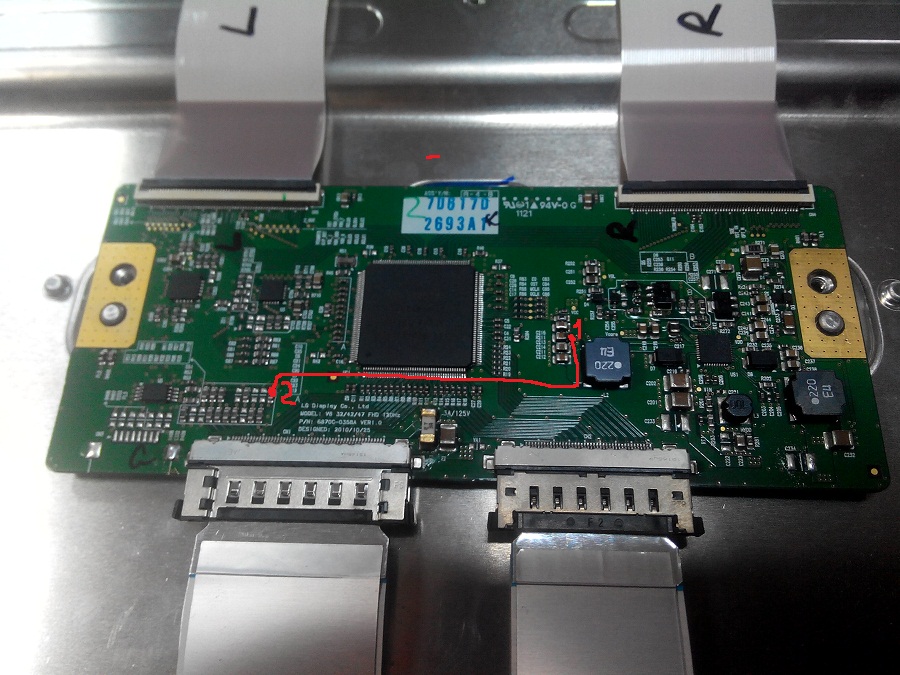 Так как матрица V260B1 - L03 имеет питание +12в, то необходимо на майне перепаять дроссель L44 в позицию L45.