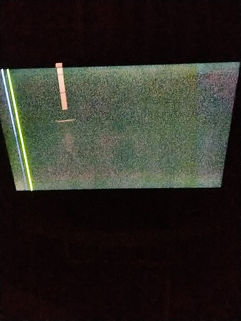 Заметил,что если телевизор лежит на столе vsc составляет около 900 вольт! Когда телевизор стоит на подставке,vsc приходит в норму (145 вольт). Решил снять игрик и ещё раз пропаял все подозрительные места. Теперь vsc стабильно в любом положении. Регулировками set up и set dn могу добиться лишь следующей картины(прикрепляю фото). Звук с телепередачи есть.