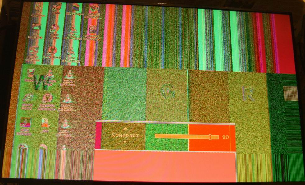 3. Телевизор через разъем VGA подключен к ПК. На экране выведено тестовое изображение. Ниже приведены фотографии. Картинка изменяется при изменении значения контрастности.