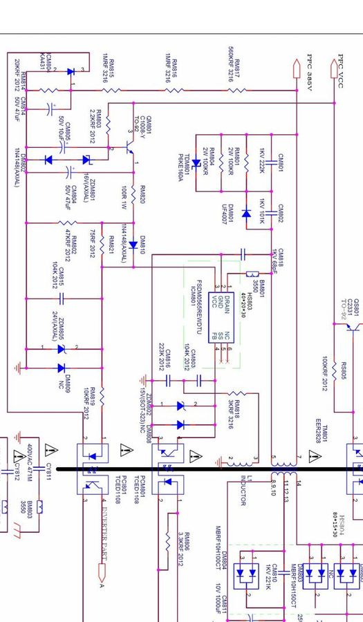 | ValentinSA писал: | | (оптрон PCI801)назначение этой цепи мне не понятно. | он завязан на корректор мощности,PFS в норме? электролиты на ESR? |