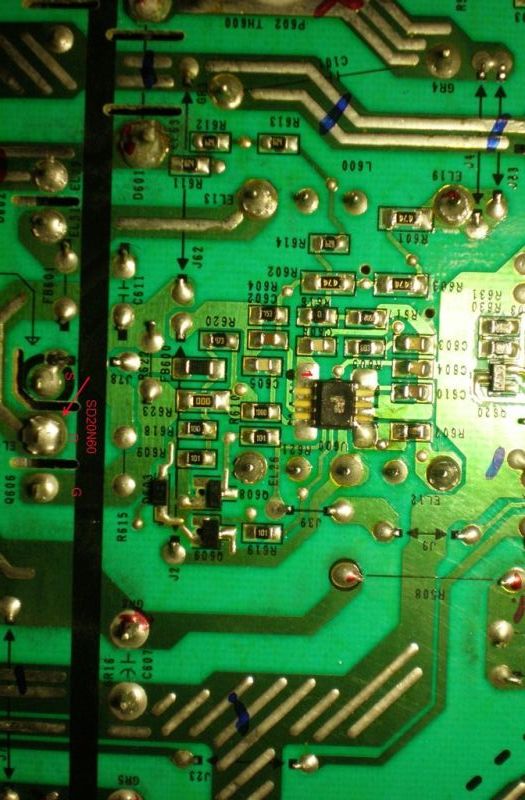 Телевизор после грозы, вышли 2 МС (На плате U600 и U502 с разрывом корпуса и соотв. маркировкой). В сервис мануале на тел. схемы БП нет, в поиске http://monitor.espec.ws/section1/printview106565.html выяснил, что первая(DIP 8 - обозначил на фото) МС - ICE3B1565J, со второй(SMD) ничего. Может кому попадался такой тел. ну или с таким БП.