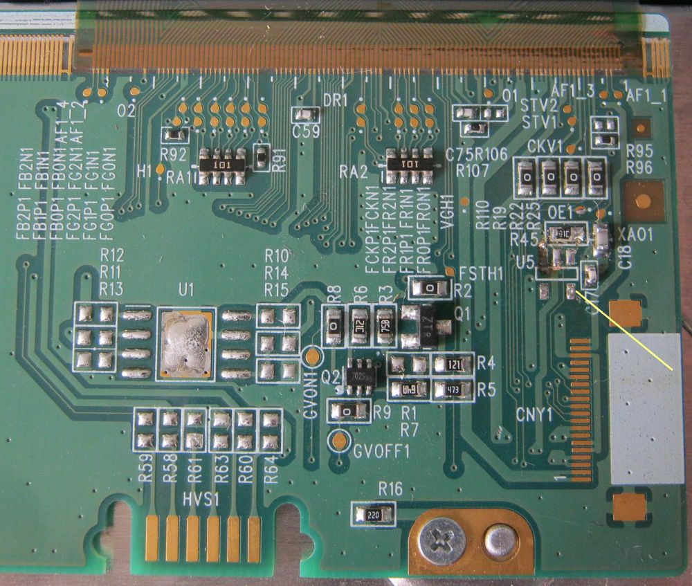 | Такая-же матрица и такой-же дефект, только ТВ Хундай. Какое у тебя напряжение на U2 (у меня 3,24, хотя на плате контр. точка "обозвана" как V25V1 (2,5v--?) ) И как сильно греется CM2713A? |