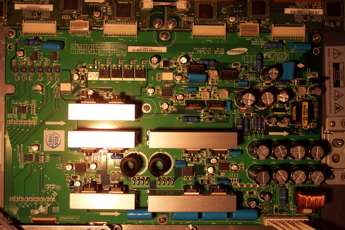 Плазменная метровая панель, китайский Samsung 2005 г., разработка Филипса. Кит. модель = Hisense TPW-4218P, панель SAMSUNG PDP Module S42SD-YD05; на здоровенном блоке питания наклейка TPW-4218P/4980. Плата X-main = 42 SD S3.3, код LJ41-02713Плата Y-main = 42 SD S3.3, код LJ41-02668A