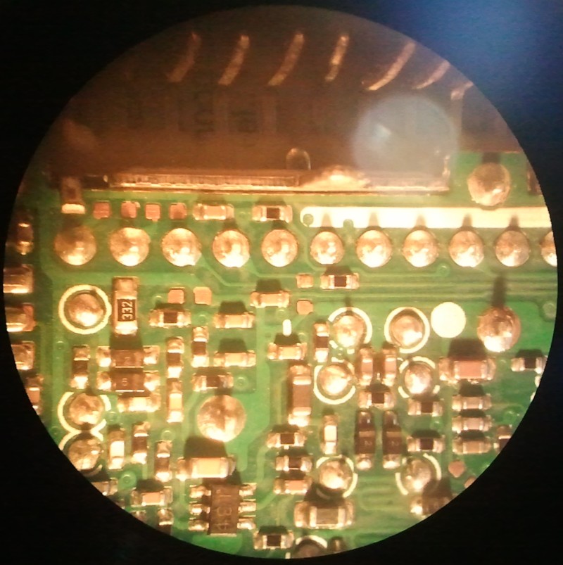 Плату помыл, под микроскопом посмотрел - трещин нету.