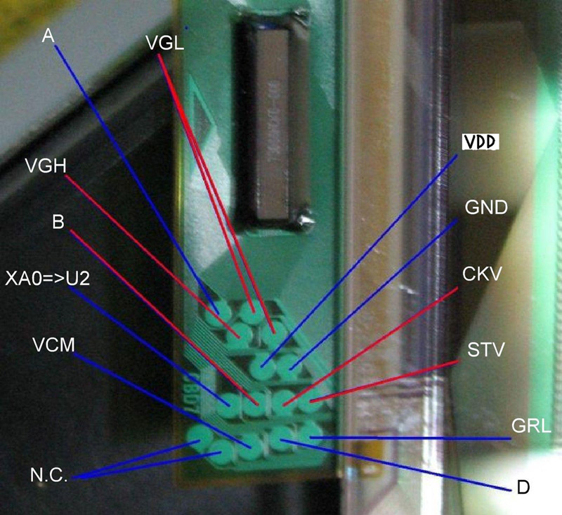 Попробуй прозвонить вот сюда точку D. Прозвони также мною обозначеную точку к разъему что на T-con.