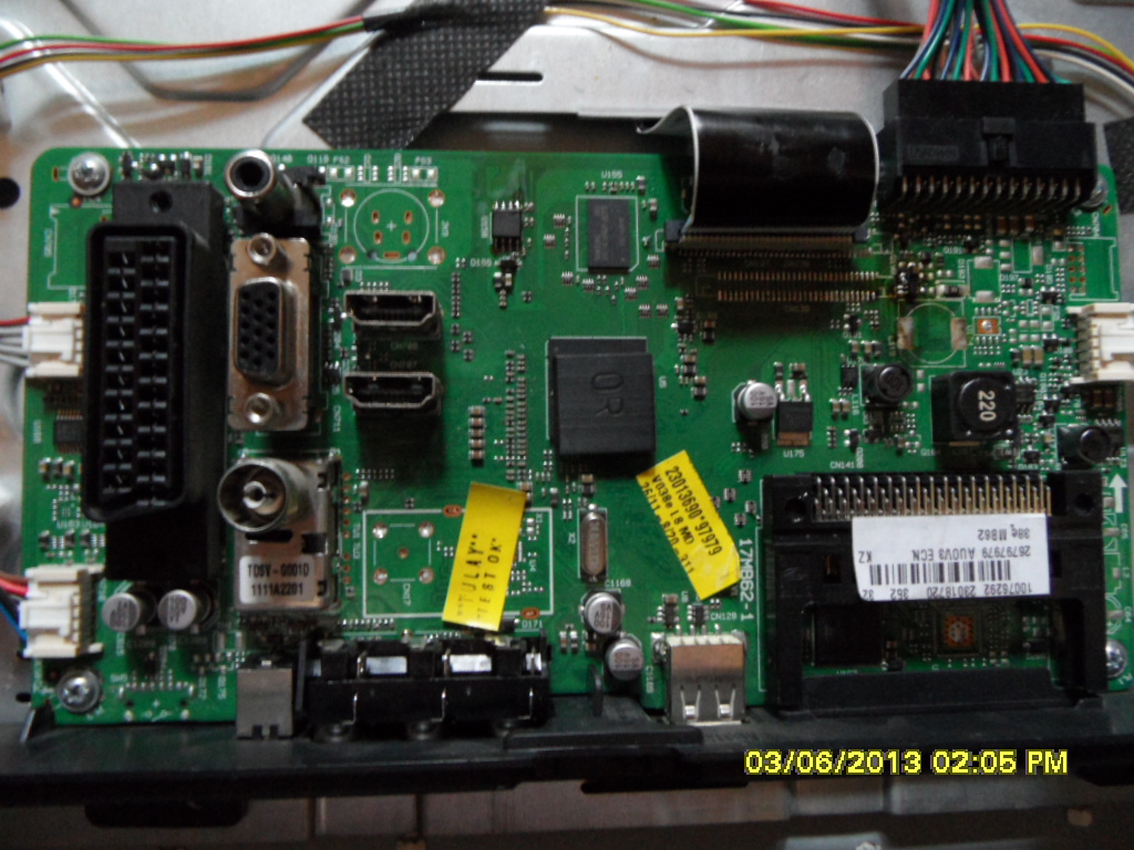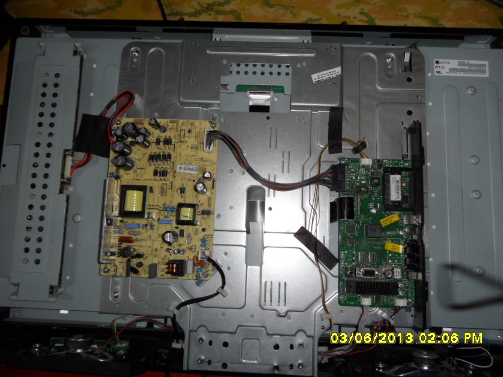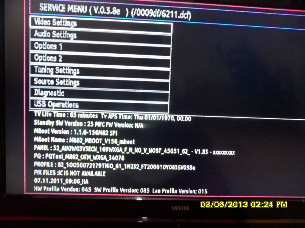 Изначально был мертвый майн,грелся сильно процессор,на шине никакого движения.Тут подвернулся аналогичный девайс с битой панелью но там стояла матрица 32AUOW03V3EON с тиконом встроенным в планку.После замены майна получилась данная картинка.Подкидывание с рoдной мамки флеши 25LB006E ничего не дало.Зашел в сервис(menu,4,7,2,5)но опцию по смене типа панели не нашел.В сервисе пишет что матрас стоит au optronics/Может кто подскажет где хранится инфа о панели,может быть она вшита в сам проц?.Спасибо.