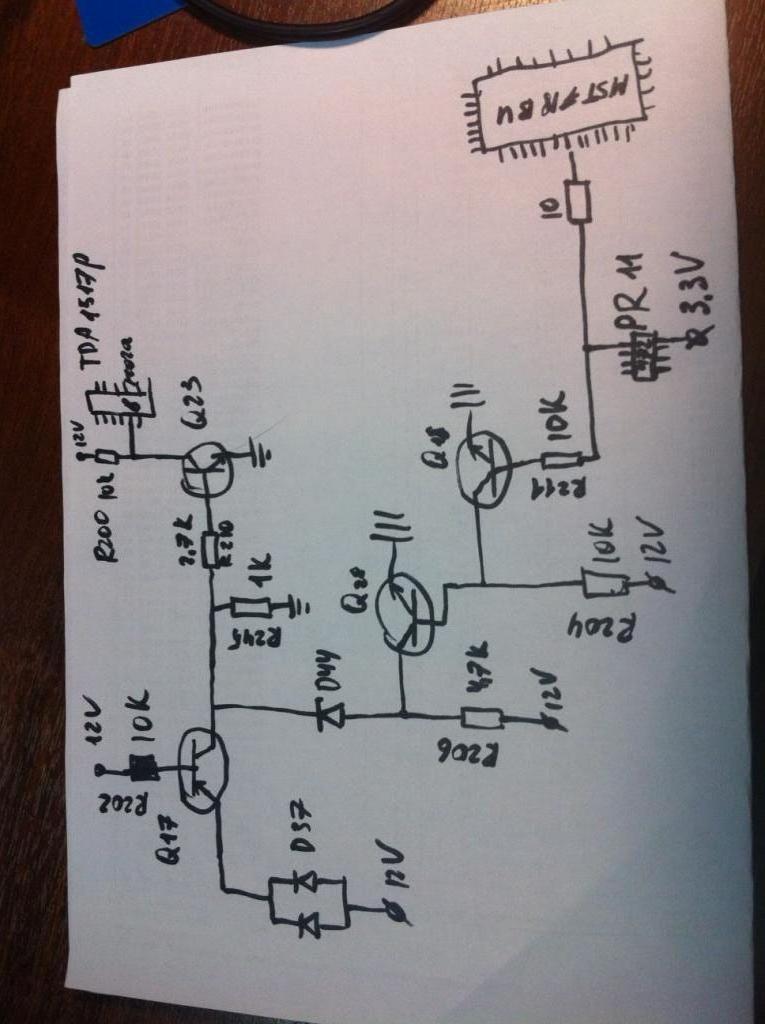 Тут не много другая схема, вот , я зарисовал примерно. Сигнал на транзистор Q18 с процессора приходит через резистор 10 Ом, отпаял его, проверил изменение сигнала на ноге проца при разорванной цепи - "0" реакции.