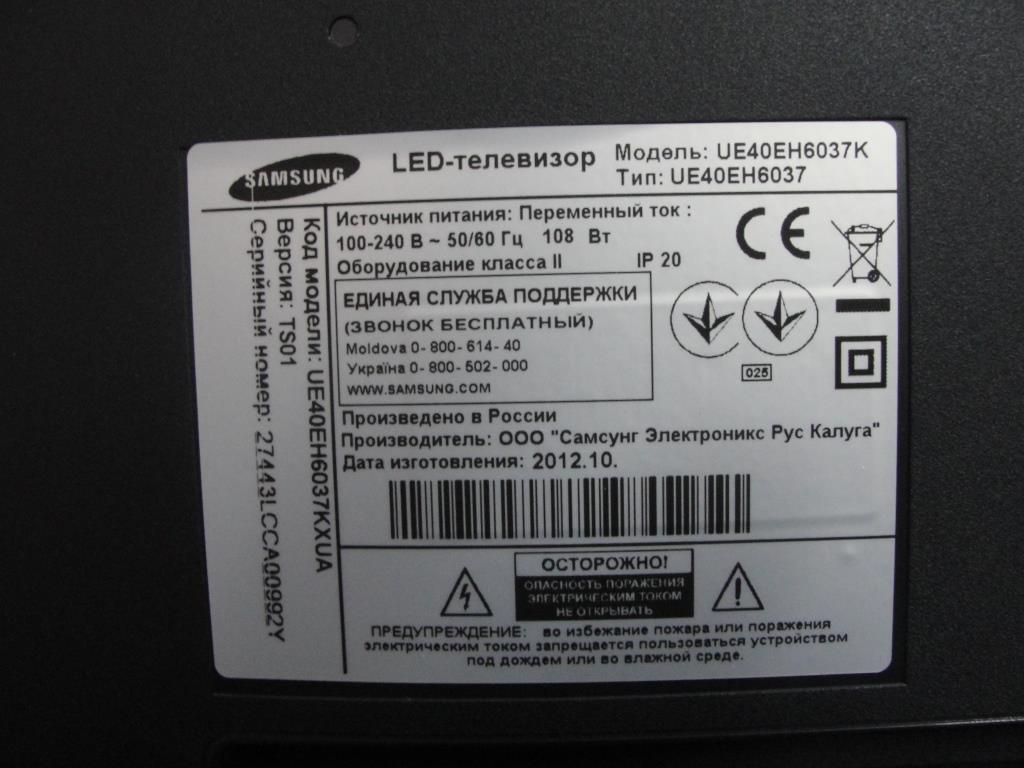ТЕЛЕВИЗОР Samsung UE-40EH6037 уже в работе. С ремонтом повезло. Обошлось отключением Watch_Dogs и после нескольких включений и выключений (когда еще он не зависал) а меню было активным, произвел обновление ПО с флешки, на свой страх и риск. Риск оправдался, так версия нового ПО влетела где то за 1 мин, а после перегруза в сервисном меню Watch_Dogs был ON и телек при этом работал как часики.