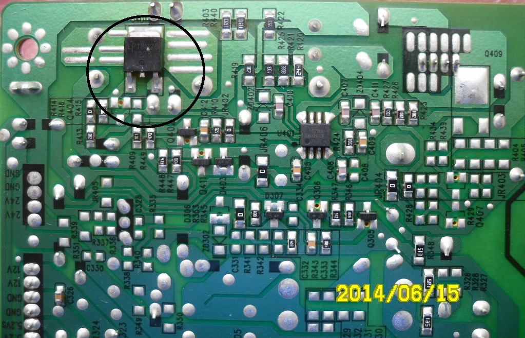 После грозы, пробит полевик в блоке питания Q201 JCS7N65FB (заменил на P10NK60) и имел утечку диод - звонился в прямом и обратном направлении ~ 400Ом D205 FR107,
