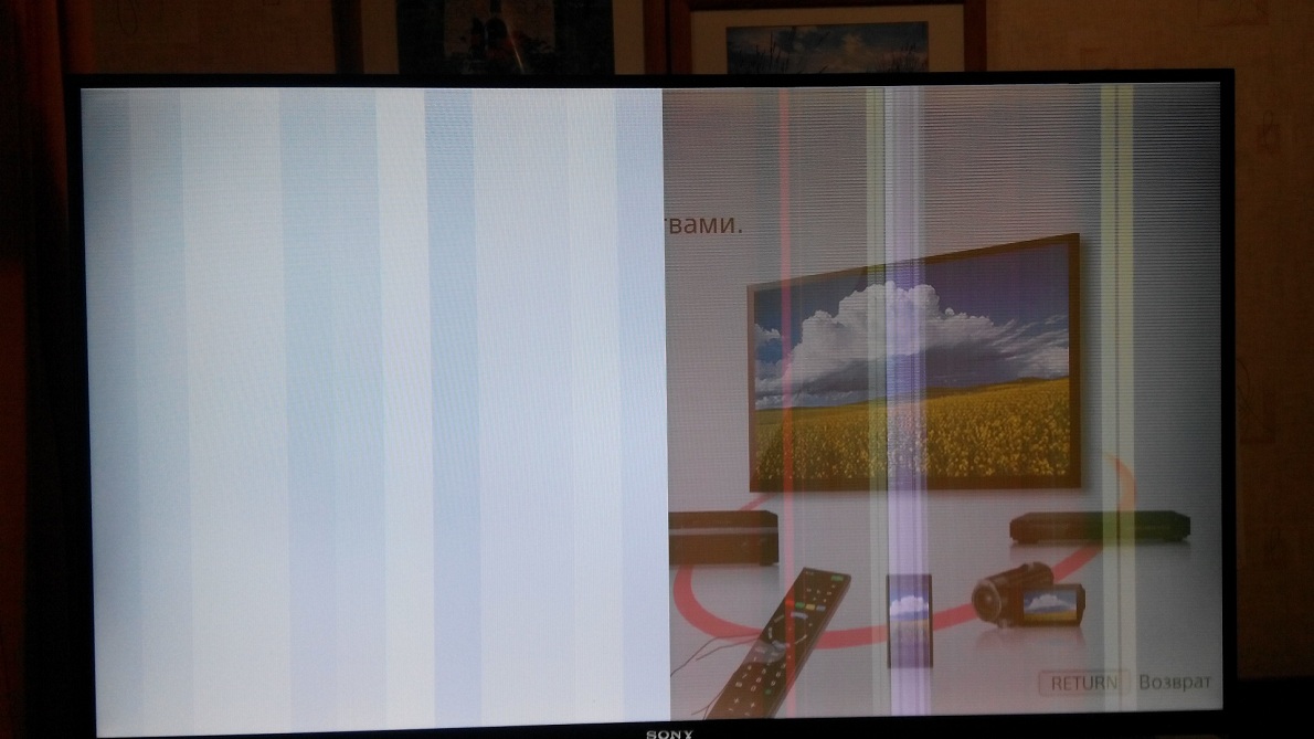 Кроме того, я забыл, а клиент мне сегодня напомнил, что перед тем, как потухнуть, телевизор эксплуатировали несколько дней с этими полосами!
