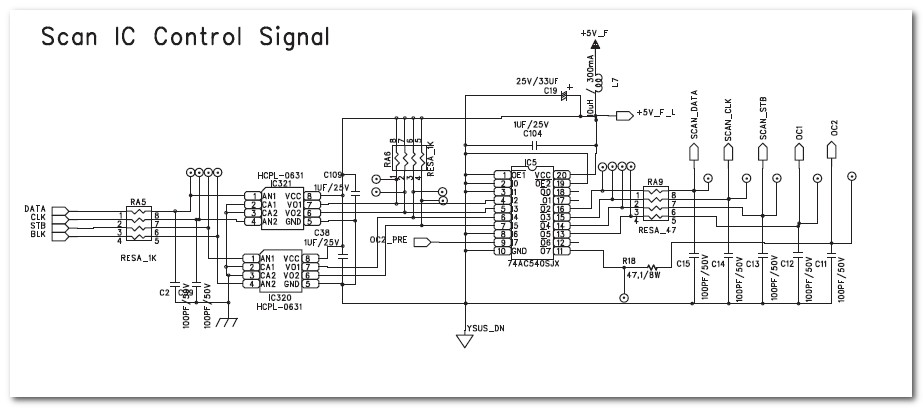 | Ты проверяй на входе и выходе микрух разделительные резюки и подтягивающие резисторы 5 сигналов к сканам на планках. удачи |