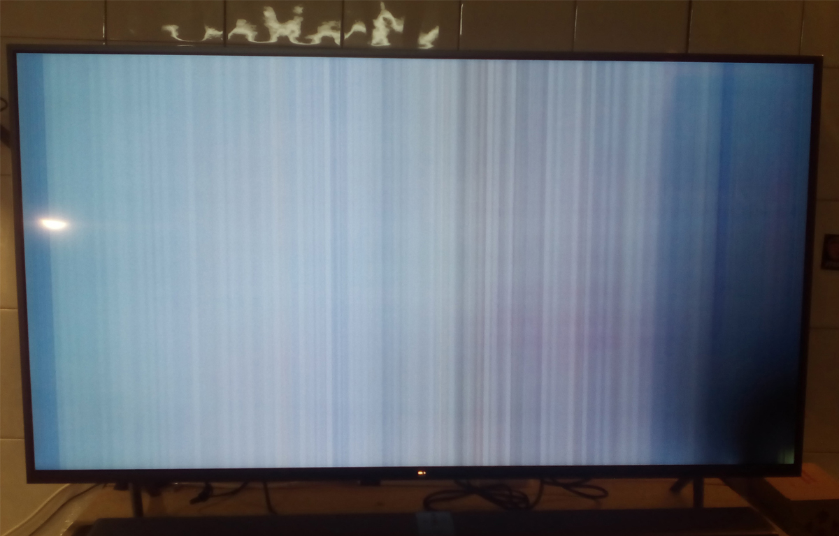 Телевизор пришел по гарантии. При включении вертикальные полосы. Снизу в правом углу засвет. Спустя 10-15мин появляется адекватное изо но засвет не пропадает.В ореоле засвета не адекватная цветопередача.