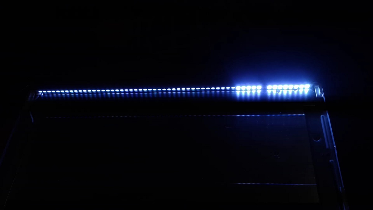 Напряжение на четырёх выводах LED драйвера 89V. На первом и четвёртом выводе есть просадки по току - 0.4мА, на втором и третьем 0.9мА. Разобрал матрицу в ожидании не горящих светодиодов на линейке. Визуально такие обнаружить не удалось. Решил снять на видео и посмотреть, что покажет техника. Получилось вот что-то такое. После включения все светодиоды загораются и горят примерно секунду. Через 1,5 секунды после включения тускнеет вторая секция и гаснет седьмой светодиод в четвёртой секции. По происшествии 0.2 секунд тускнеет и первая секция, однако перед тем, как уйти в защиту она снова загорается ярко.