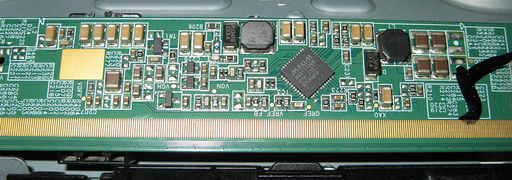 Стекло HV320WX2-261 лежало в запасах. Поставил. Все запустилось с полпинка. Но вот какой дефект на изображении оказался: почти половина экрана слева как будто грязное пятно. При рассмотрении вблизи напоминает уменьшенную яркость пикселов в шахматном порядке. Кроме того, в этом месте остаются фантомы логотипов, меню и статичных надписей. Дело только в матрице. Подкидывал другие майны (от лыж и универсальные) - дефект не пропал. Вопрос собственно такой: стоит искать причину или приговор матрице? Перерыл кучу форумов, но такой дефект не встретил. Может кто сталкивался с таким?