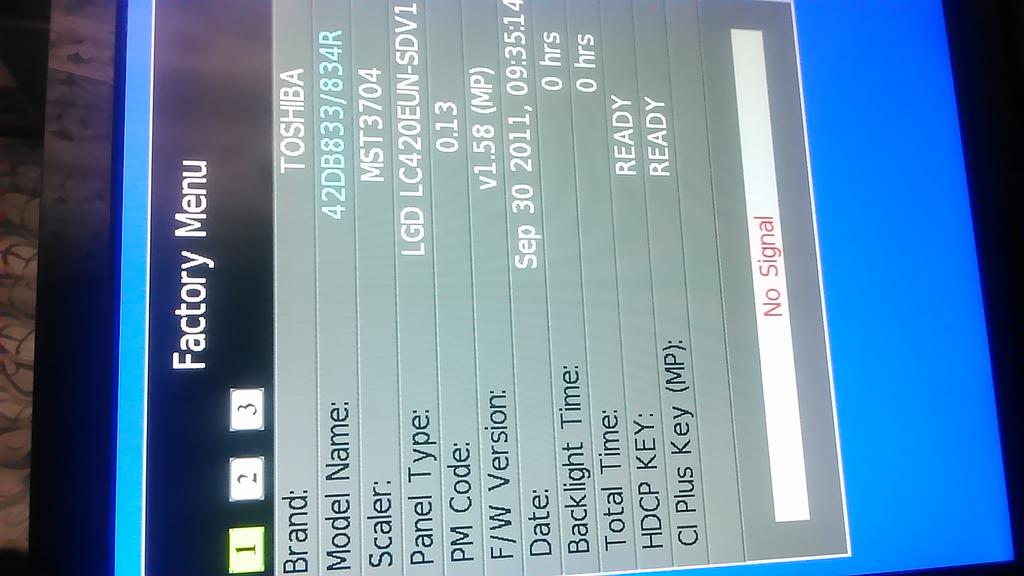 LED Toshiba 42DB833R поменять панель в Factory Menu