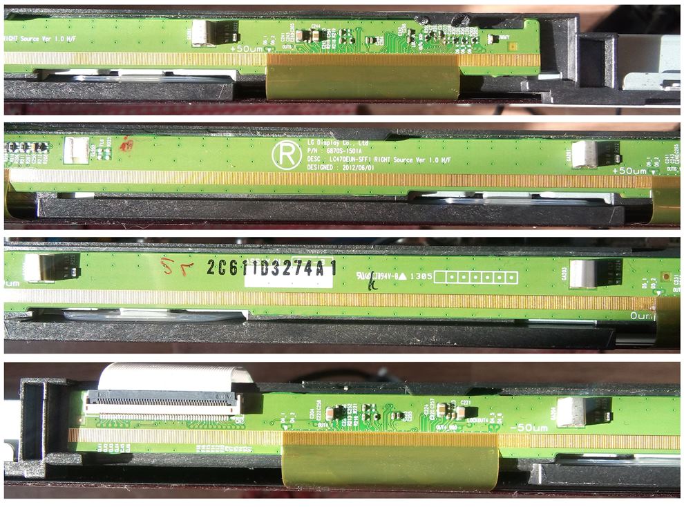 Всем доброе утро. Спасибо за ответы. Приложил фотографии планок. Горизонтальных полос не было. Только вертикальная и не с самого края, а примерно 20см от левого края (если смотреть на телевизор, это как раз правая планка получается). Результат работы сервиса, это то что я увидел сам разобрав телевизор, а что он еще мутил осталось за кадром, к сожалению меня не просвятили. По поводу нести в нормальный сервис, я бы возможно бы и отнес, только где его найти в своём городе, обжигался с сервисами уже не раз, ехать куда то дальше не хочется, по крайней мере пока не выясню что с телевизором не так. Я относил телевизор к дилеру LG (в своём же городе нашелся такой), с меня взяли за диагностику и сказали, панель 37 тысяч + работа 4 тысячи. Как я понял они просто решают вопрос заменой чего либо и не вникают в проблему. Конечно же я отказался. Мало того что панель столько не стоит, да и потом есть какая то вероятность что можно восстановить без замены. На выходных попробую снять показания с T-CON. Выложу результаты. Мне в сервисе говорили, что планки отпаять от матрицы нельзя, сложный процесс, нужно специальное оборудование. Хотя я видел видео, как с помощью фена и паяльника планки успешно меняли, подскажите, как долго такая замена прослужит и стоит ли этим заниматься?