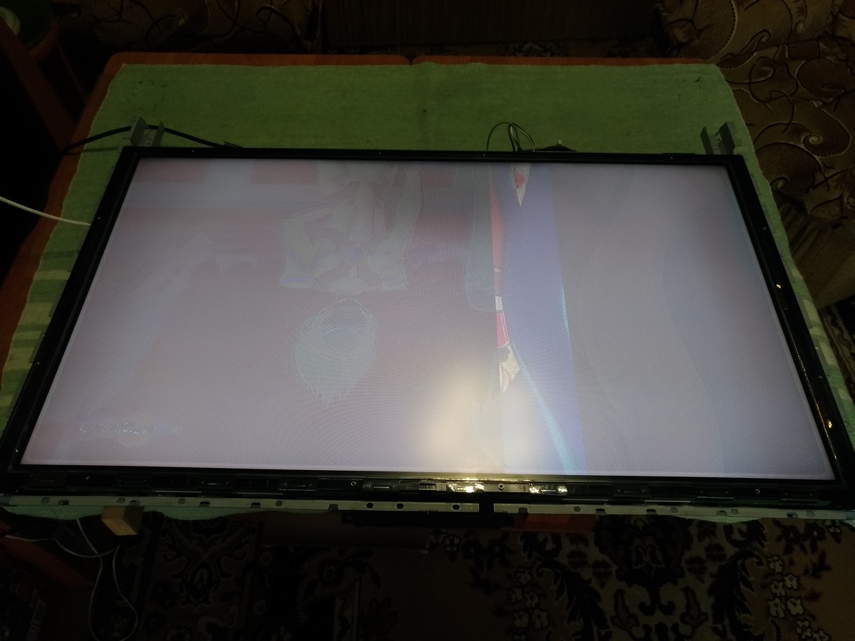 Симптомы: блеклое изображение, будто яркость на пределе, убраное изображение остается на несколько минут послесвечением, даже после выкл-вкл. В левой половине вертикальная полоса около 5 см шириной, в которой цвета инвертированы (фото).