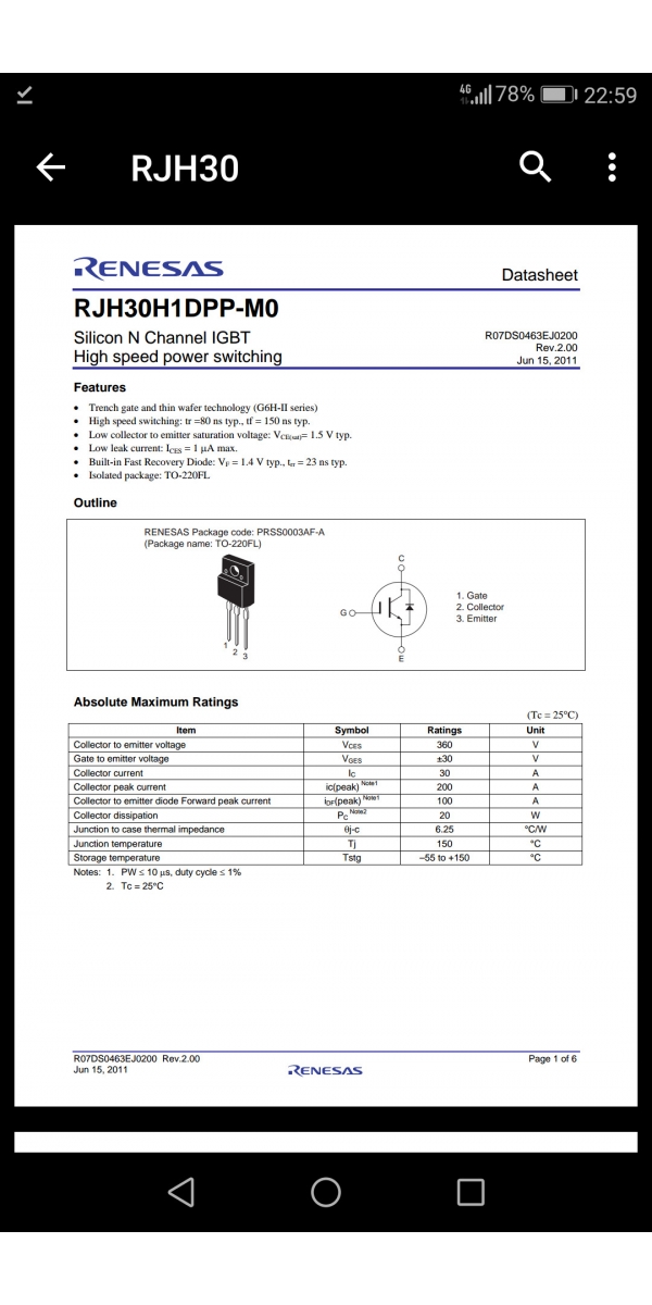| Вот фото RJH30E2 которые я менял(покупные с магазина), по даташиту должны быть с диодом, но телевизор работал, хоть и с траблой при включении. | |