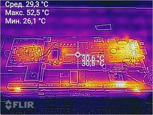 Вот фото как выглядит рабочий майн через тепловизор. Тот с которого я давал замеры.