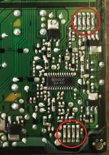 Может из-за большого потребления подсветкой BD9483F уходить в защиту? |