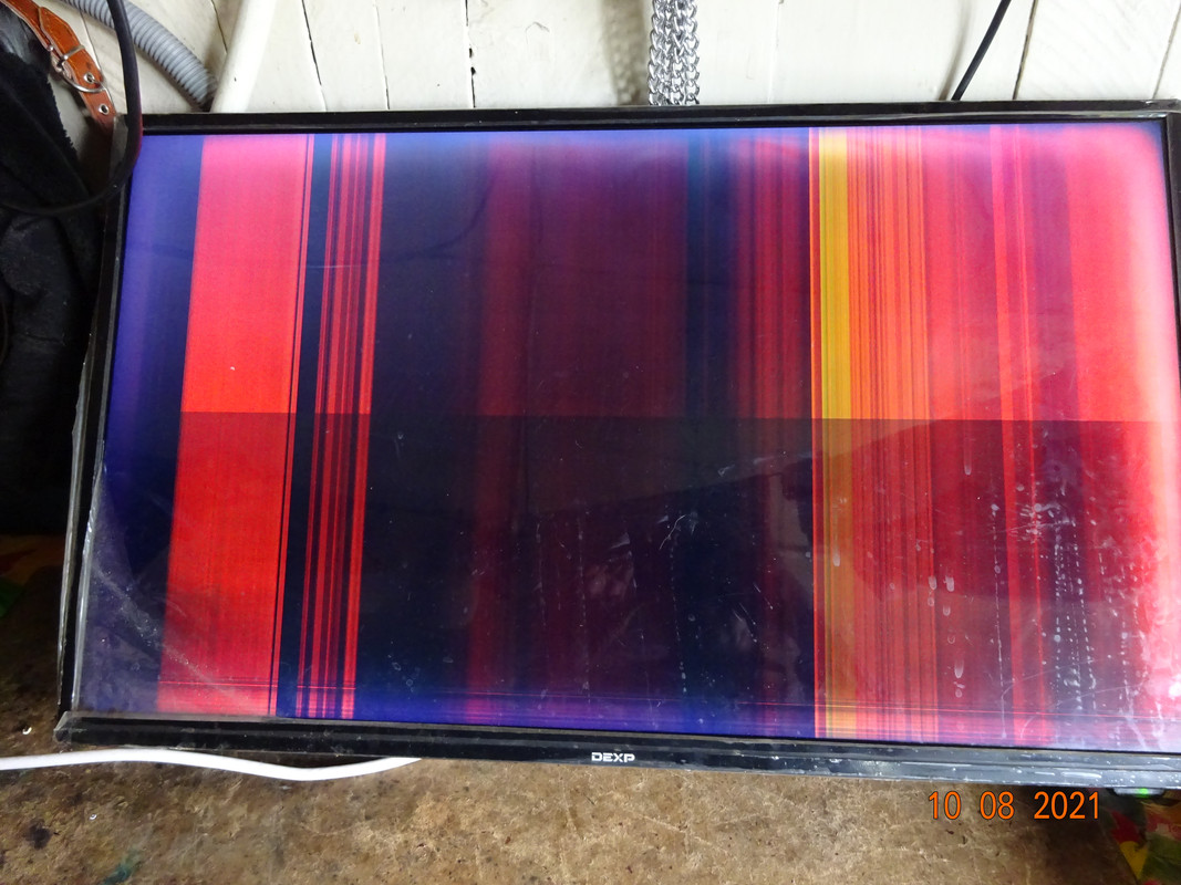 До меня его никто не трогал,следов воды нет на матрице и на шлейфах.Стучать его некому было.Была гроза,крякнули сразу 2 ящика.Кинескопный эриссон-микра на звук взорвалась ,и этот перестал,вернее стал так показывать.Я думаю,что это какое-то совпадение-материнская плата вперёд бы вылетела,а она целая.