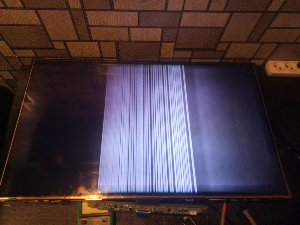 На экране при включении медленно вылезают белые вертикальные полосы в такт меню. После этого замирают.