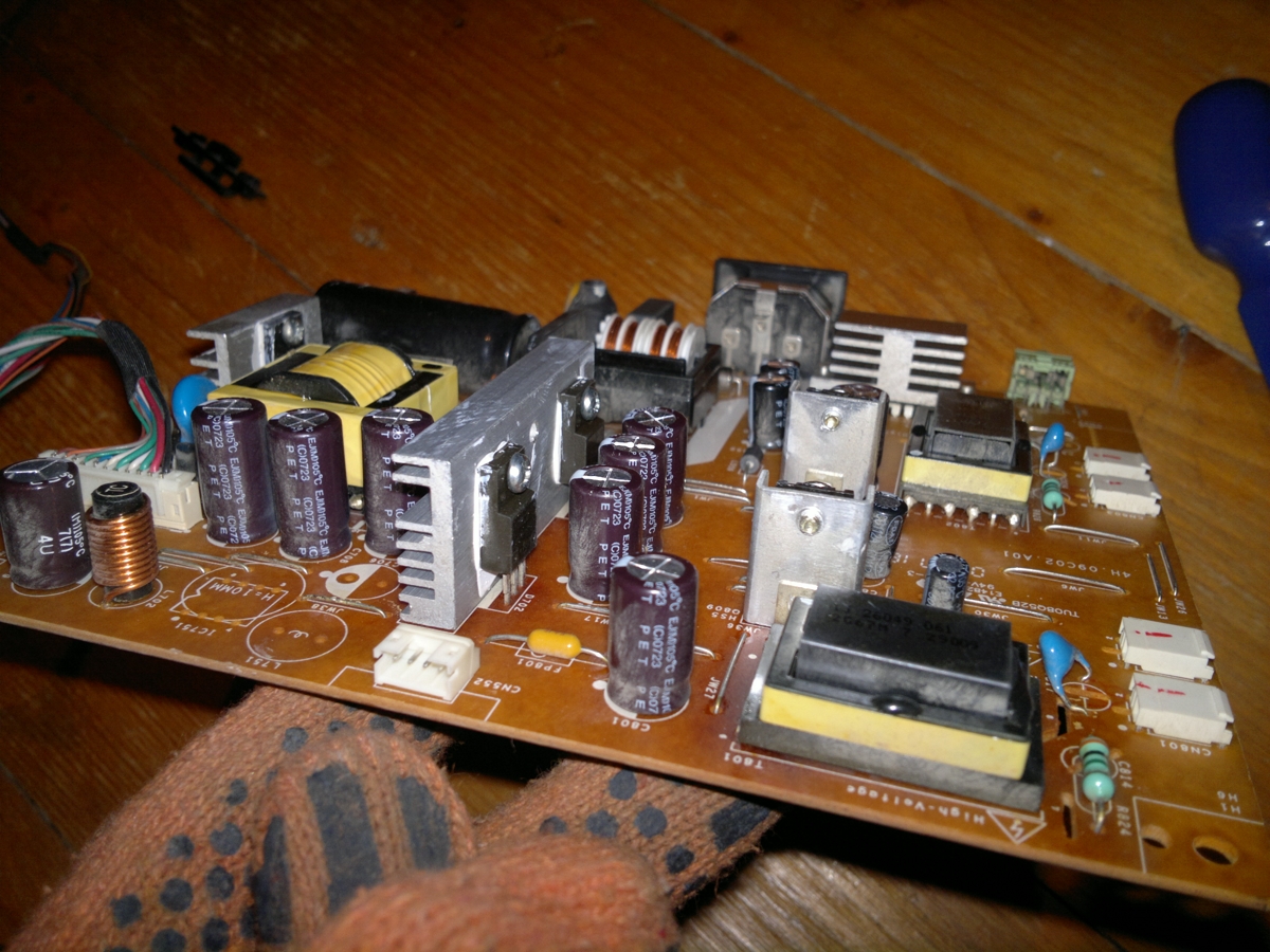 в мониторах я нуб. но мои рассуждения такие: возможно не одна из ламп сдает позиции, засветив красным светом (сие я уже узрел в иных ситуациях), а полностью отошла в мир иной, взяв с собой инвертор, обмотка которого возможно уже в разрыве, либо транзистор приказал жить ну оччееееень долго, и по-этому светят только две другие лампы две из четырех))))