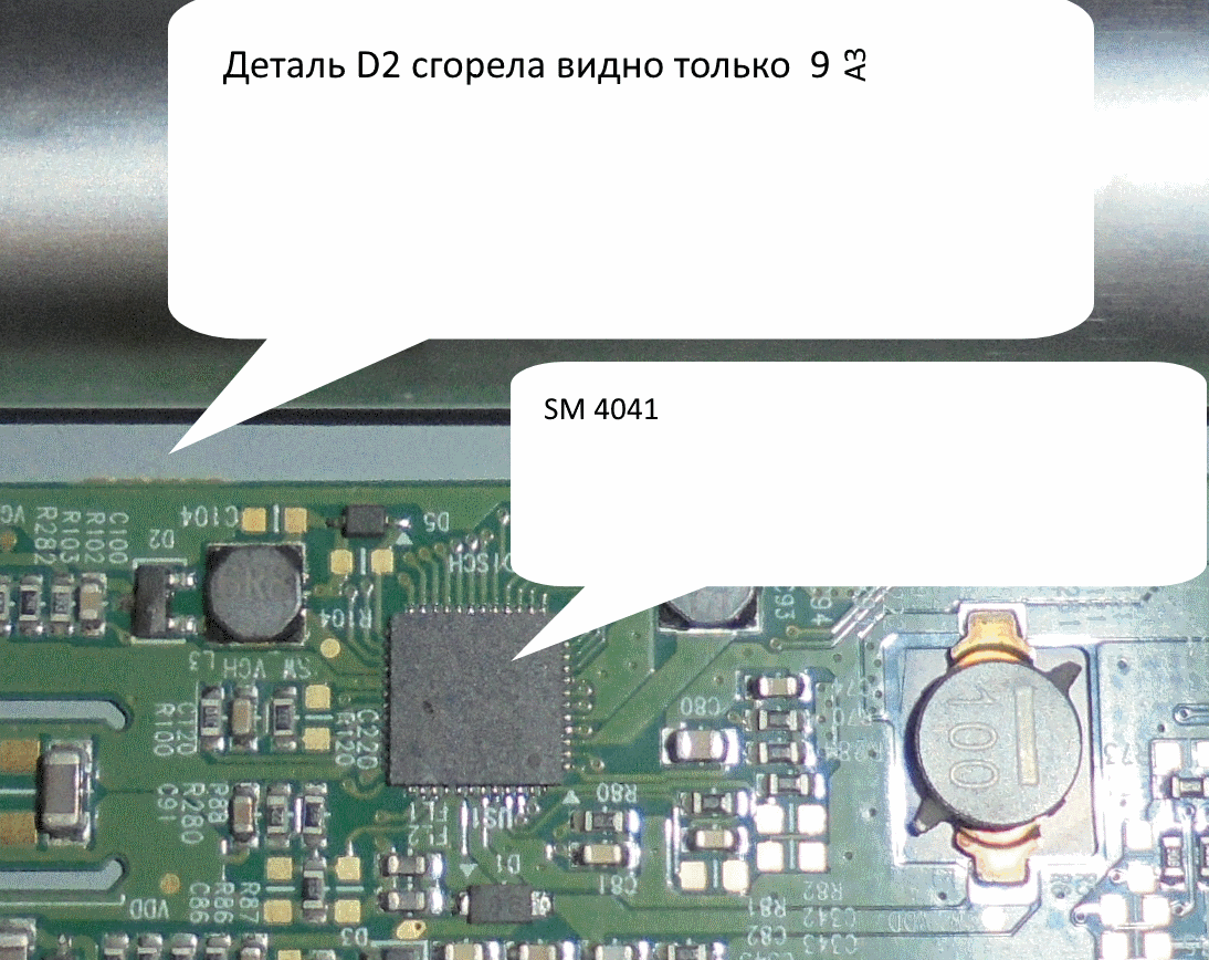 Весь инет активно продает и покупает sm4041,а значит и паяет оных.Помогите найти на нее датошит или схему включения.В панели есть подсветка и хаотические полосы. Все началось с остатка какой то активной среды возле С101 которая сожрала дорогу к С103.