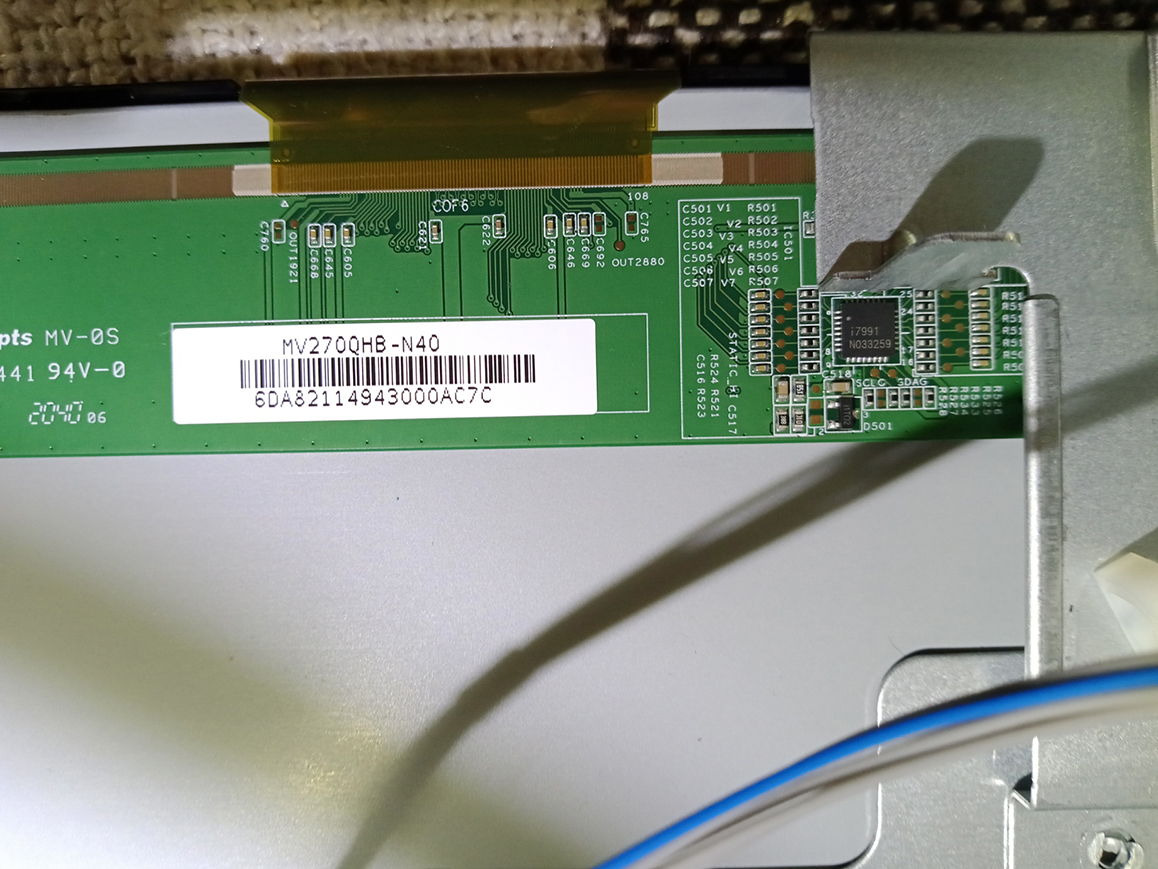 Важно что эти 6 точек (в центре фото рядком) дают сигналы чередуясь по вертикале матрицы, потому цикличность сетки и неравномерна, так как были битые 6 и 4 сигналы. Можно посчитать по пикселям от края изображения и вычислить какие резать. Снятие питания через нулевые резисторы с этой половины не устраняло проблему - подпитывалось через стекло с другой стороны, лишь сигнальные линии нужно срезать и лишь проблемные. Ибо незачем перегружать драйверы здоровой стороны, которая на такой диагонали полностью компенсирует эту хворь.
