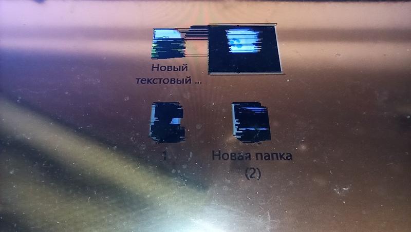 При включении больше нет заставки. Подключаю HDMI - когда винда загружена нет изоображения. Нажимаю контр альт дел - есть изо. Синий, но белый с артифактами. Меню работает, поскольку серый цвет отображает. Убираю с раб стола иконки и включаю разные цвета раб стола - половина цветов отлично заливают, а при включении других цветов - нет изоо. Если разрываю востановленный контак шлейфа, то вижу часть заставки.