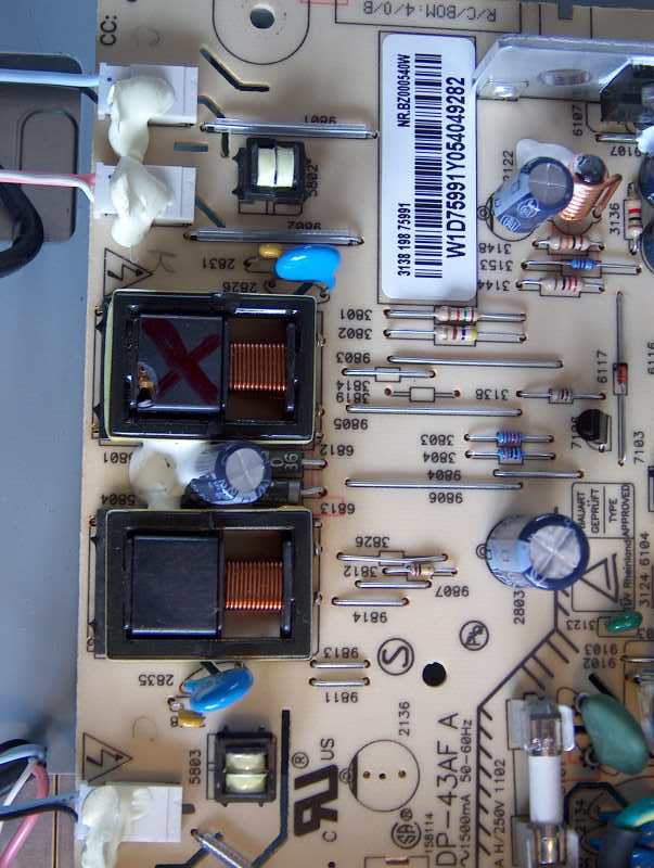 Перерезал дорожку к ВВ обмотке сгоревшего транса(чтоб там чего доброго не шёл паразитный разряд), и соединил ВВ цепи параллельно.