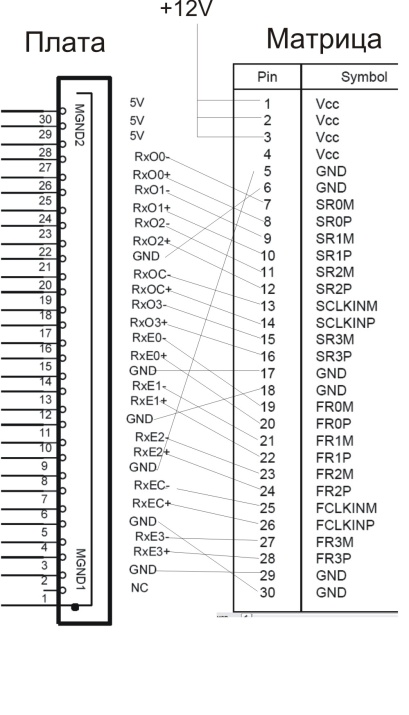 Разъёмы на плате и на матрице по конструкции одинаковые несовпадает распиновка.