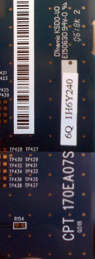Монитор DELL E177FPv.Плата блока питания EADP-30AF B. Блок питания на 5.1V/1.6A совмещен с инвертором на 680V/7.5А. Плата обработки сигнала DAL7ZIMB037 на процессоре GENESIS gm2621-LF. TFT панель CHUNGHWA CLAA170EA. В верхней части панели расположена плата шлейфов.
