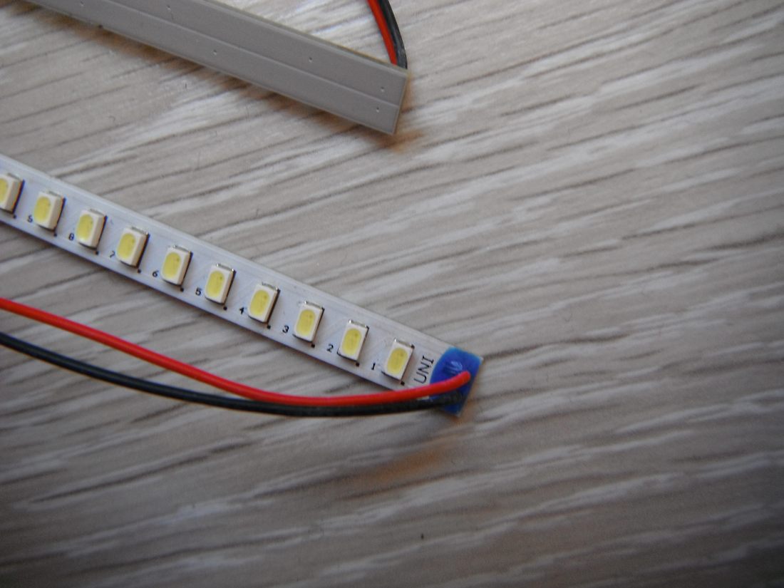 Сгорела г-образная лампа CCFL. Все, что смог найти вместо нее в нашей дыре - тонкую (2мм) линейку ярких светодиодов (14х3) на 12в.