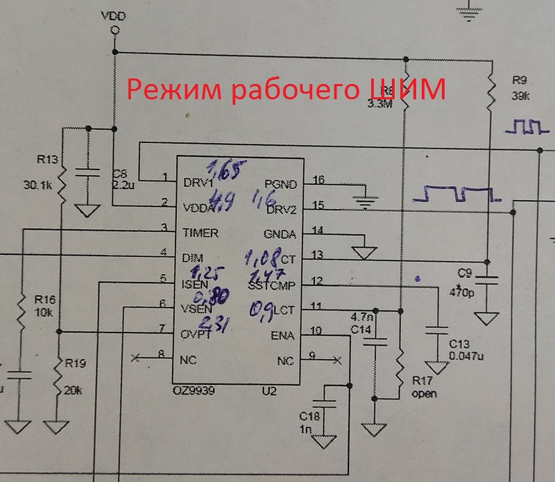 | Цитата: | Если транс меняете на транс с иными характеристиками, то встали бы встали осциллом на выходы OZ9939, и увидели бы,
