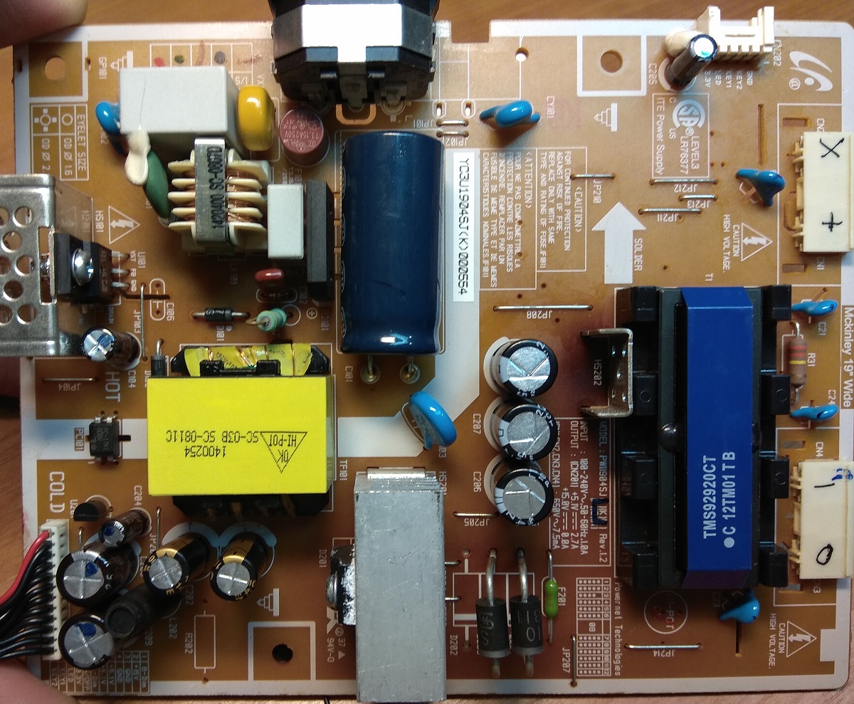 Добрый день ! В ремонте Samsung T190, модель LS19TWHSUV/EN, матрица LTM190M2-L31, попал ко мне уже после чьего то вмешательства. Инвертор PWI1904SJ Rev1.2, ШИМ OZ9939GN+STU407D, б.у. конденсаторы были полностью заменены во вторичке. Вторички трансформатора полностью в обрыве и не прозваниваются, купил такой же (TMS92920CT, вторички по 890ом), также под подозрение попала сборка STU407D - заменена на точно такую. В итоге бп выдаёт напряжения 5,2 В а также 15,7 В , в норме, лампы вспыхивают очень кратковременно(менее секунды), и шим уходит в защиту. Лампы проверочные и родные (из матрицы ) - рабочие 100%. Все мануалы на T190 без схемы инвертора, аналогичный блок в Samsung 943N, но там FAN7314. Прошу помочь схемой на PWI1904SJ, поскольку на сборку от шимки идет много мелочевки.